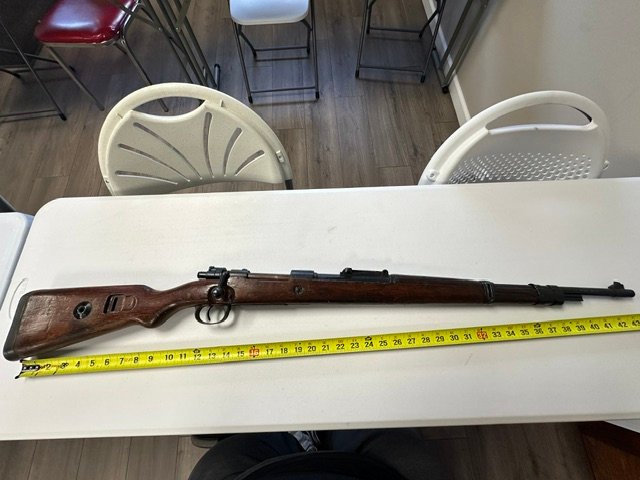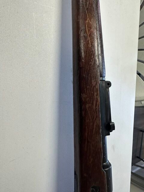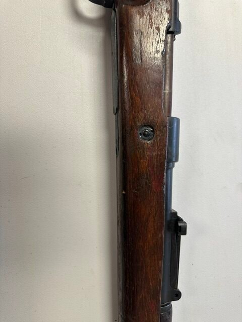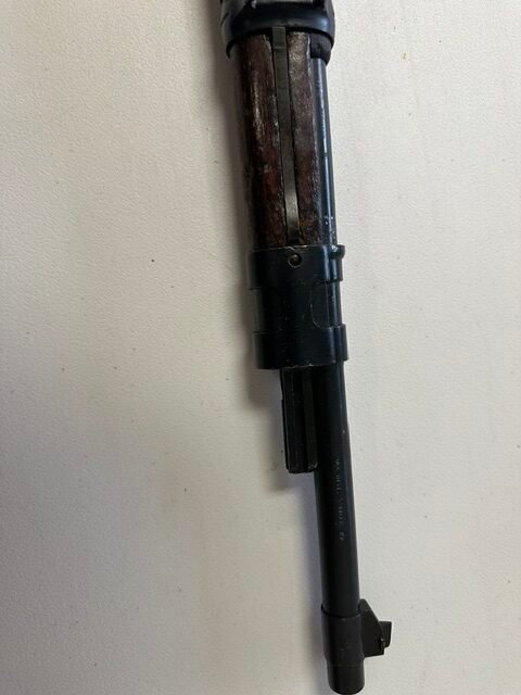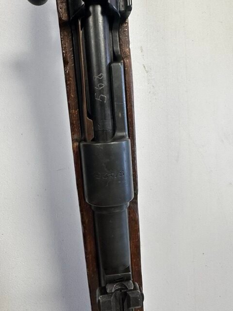 Mauser K98k bolt-action rifle chambered in 8mm, a classic WWII-era military rifle with strong collector and historical appeal. This rifle features the iconic K98k profile with wood military stock, hooded front sight, and bolt-action system that made the Mauser one of the most recognized service rifles of the Second World War. Overall, it appears to be in good shape for its age, showing honest handling and storage wear consistent with a surplus military arm while retaining solid visual appeal. A great piece for the collector of WWII firearms, military surplus enthusiast, or anyone looking for a classic 8mm Mauser rifle with real history behind it.